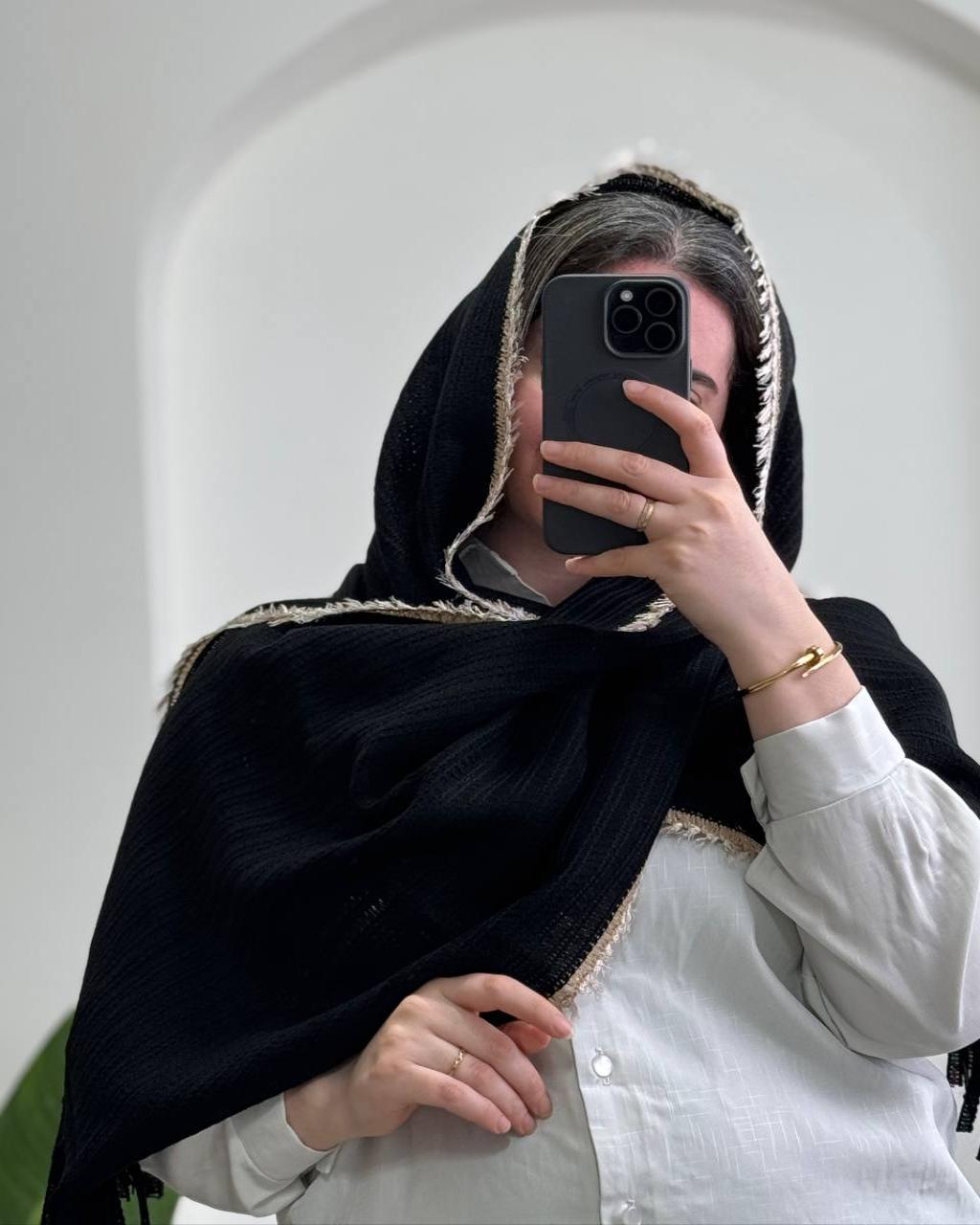 • جنس: بافت بدون پرز با ریشه های نیمه بلند ؛ کاملاً مناسب فصلهای سرد. بافتش سبک اما گرمکنندهست و وقتی روی گردن قرار میگیره حس سنگینی و خشکی نداره.
